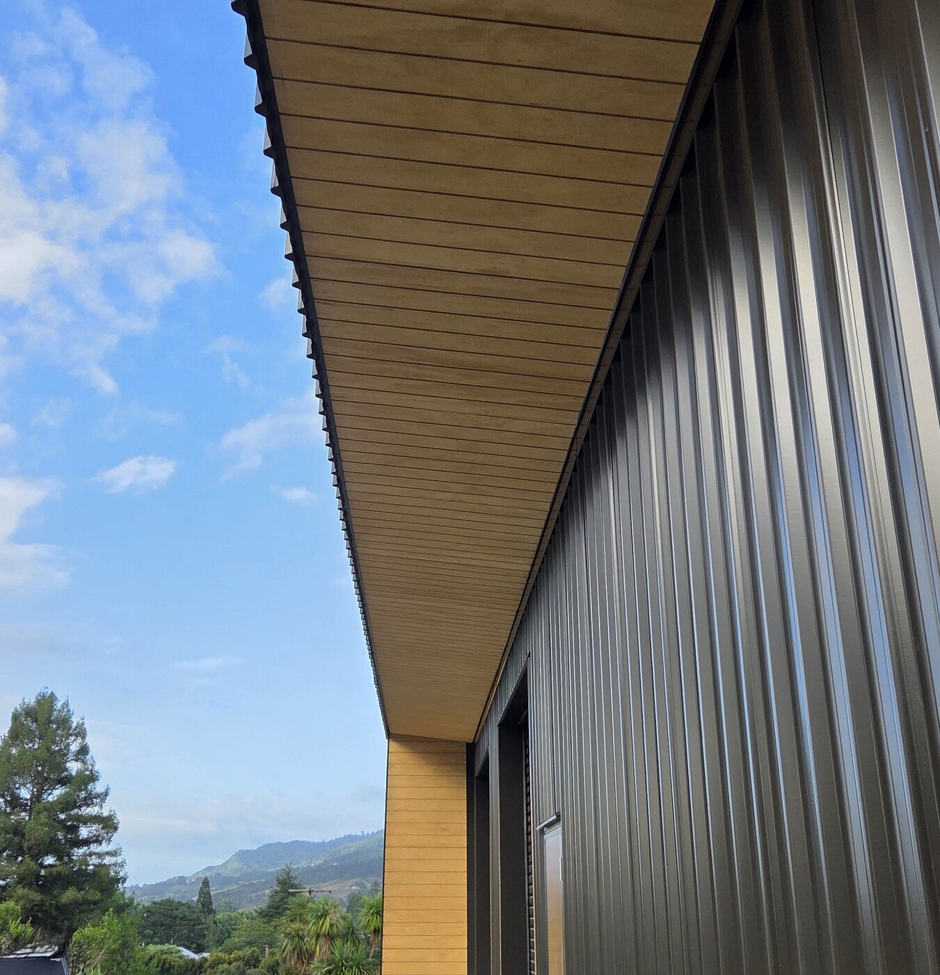 Cladding - 5 rib profile, Trimrib. Wing walls are clad with shadow clad plywood